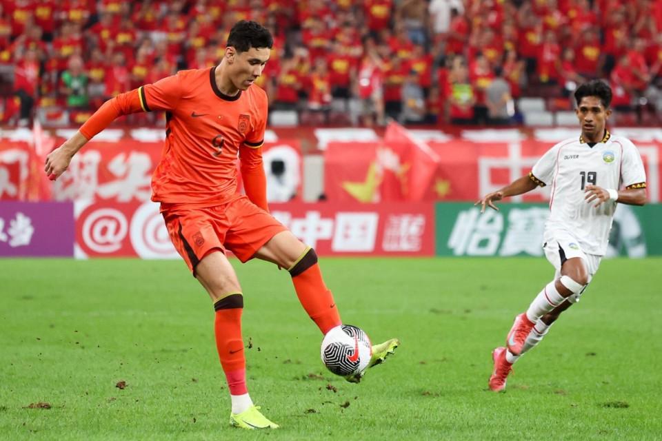 首战对阵东帝汶,出任右边锋的拜合拉木在第41分钟推射破门,为U22国足打破僵局。